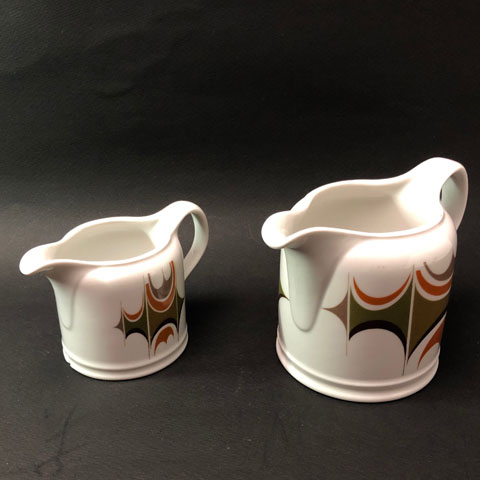 真っ白の磁器にモダンな模様のペアです。