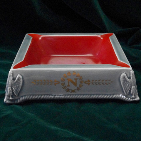 渋い赤が素敵な皿にナポレオンのシルエットが浮かんで、